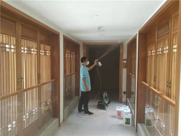 工程状态:我公司对山庄室内进行除甲醛后,经第三方机构室内甲醛检测合格并完成验收